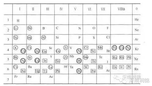 表1-1周期表中可以電鍍的金屬
