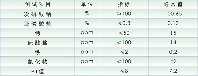 主要用作化學(xué)鍍的還原劑,對(duì)電鍍無法進(jìn)行的大型設(shè)備和細(xì)小物件,或要求有較高的精度具有凹凸紋的復(fù)雜外形,或深孔內(nèi)壁,或要求有較高的表面硬度和耐磨性,或塑料陶瓷,玻璃,石英等非金屬材料表面金屬化均可獲得致密均勻,并較電鍍更為優(yōu)良的鎳磷鍍層。廣泛用于電子,航空,機(jī)械,石油等行業(yè)。還可作合成樹脂的界面活化劑,分子量調(diào)節(jié)劑,熱穩(wěn)定劑和食品添加劑。