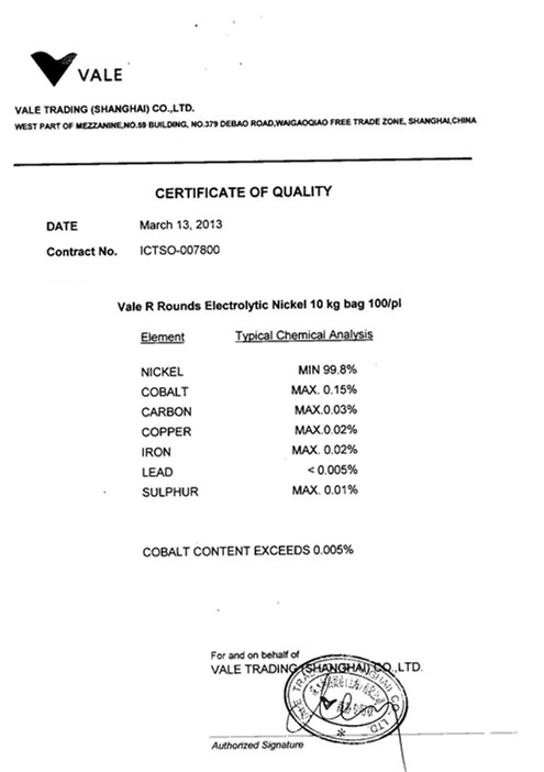 簡介:加拿大不含硫鎳餅,不含硫梅花鎳,主要用于汽車配件、衛(wèi)浴、連接器、線路板等高品質(zhì)電鍍。