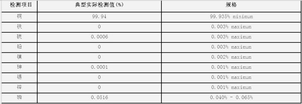 含    量:銅含量99.9%以上,磷含量0.04-0.065%