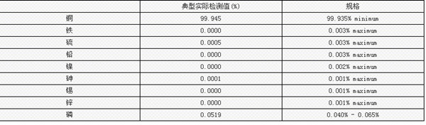 含    量:銅含量99.9%以上,磷含量0.04-0.065%