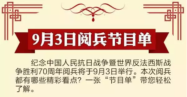 此文關(guān)鍵詞:潤錦提示|9月3號閱兵|閱兵指南